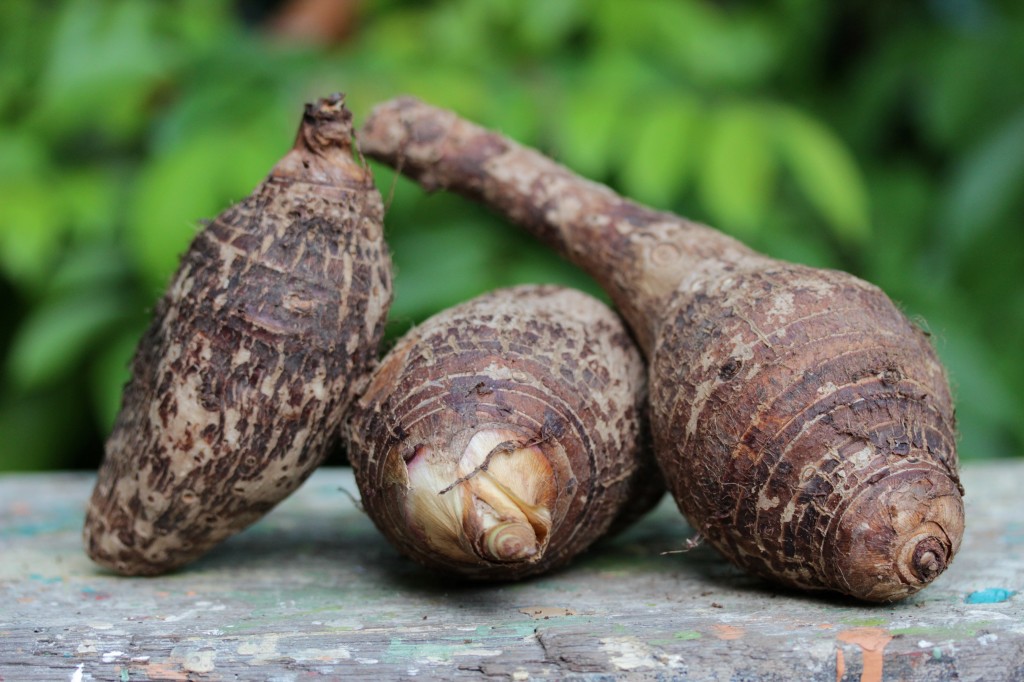 A forma mais comum é chamada de dasheen. A planta também é vulgarmente conhecida como “orelhas de elefante”, devido ao formato de folhas largas quando cultivada por motivos decorativos ou florais. As folhas, raízes e rebentos podem ser utilizados como ingredientes alimentares, mas a planta deve ser cozinhada. Na verdade, este alimento é tóxico na forma bruta, devido ao seu elevado teor de oxalatos, mas essas substâncias perigosas podem ser eliminadas quando cozidos com alguns bicarbonatos de sódio ou embebido durante a noite.